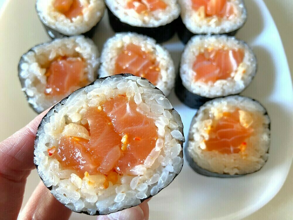 具材にはコストコの大人気商品であるアトランティックサーモンが使用されており、ごま油が香るたれで味付けされているため、醤油をかけなくてもそのまま美味しく食べられます。
