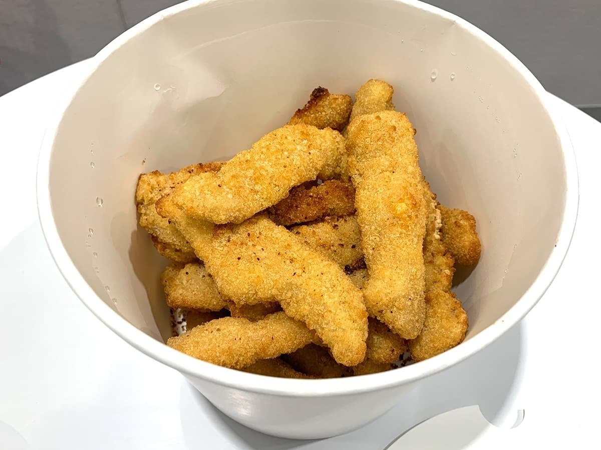 大容量の容器にたっぷりチキンが詰め込まれた「チキンスティック」です。以前販売されていた「チキンスティック&ポテト」からポテトがなくなり、チキンスティックのみとなって登場しました。