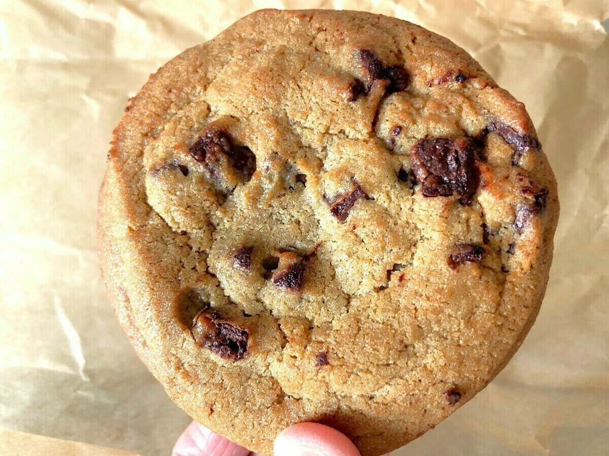 今まで見たこともないような巨大クッキーを堪能できる「ダブルチョコチャンククッキー」。