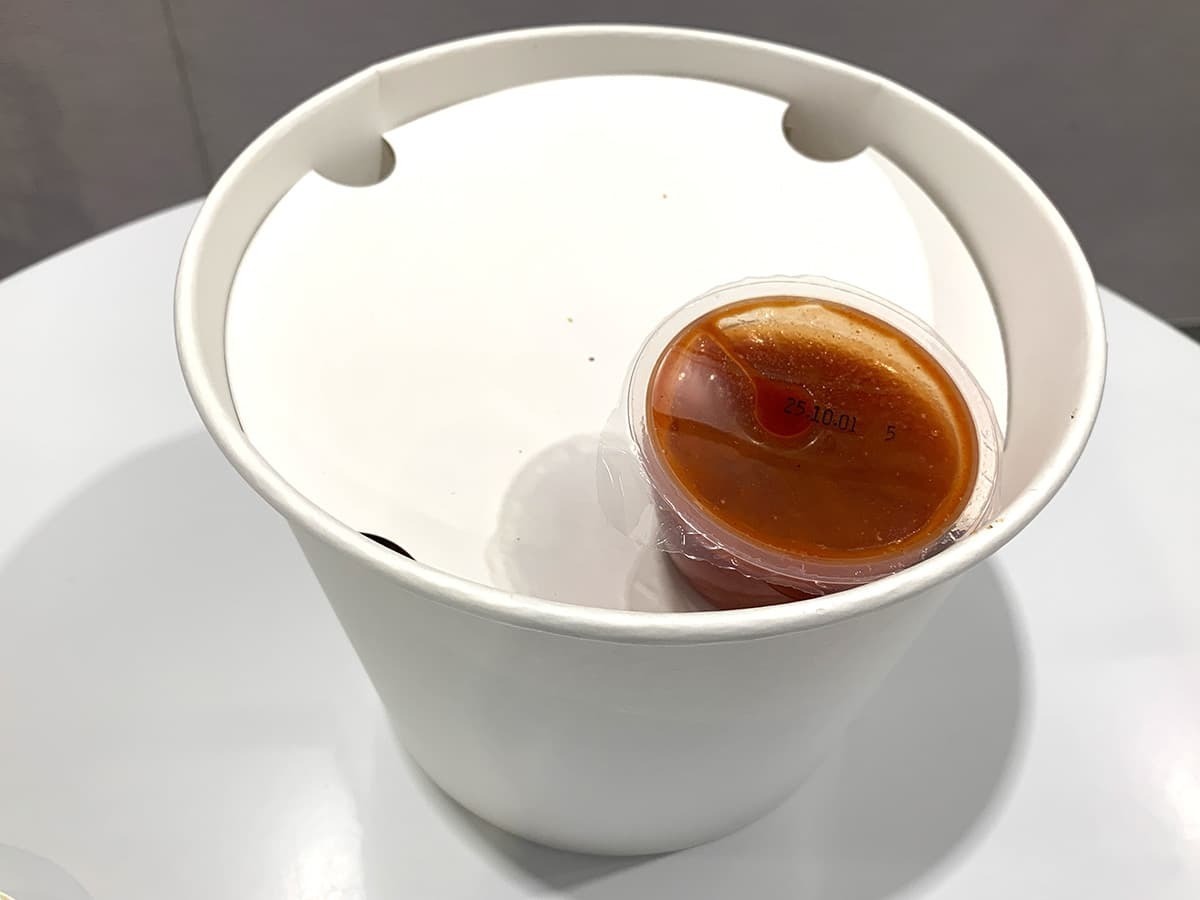 カップに入ったチリソースが付いており、味変も楽しめます。