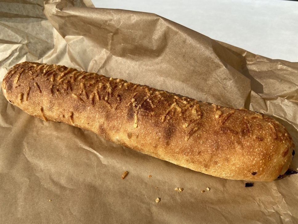 パン生地は外がカリカリ、中はもちもちの食感で、ほのかに香るチーズの風味が全体の完成度を高めています。