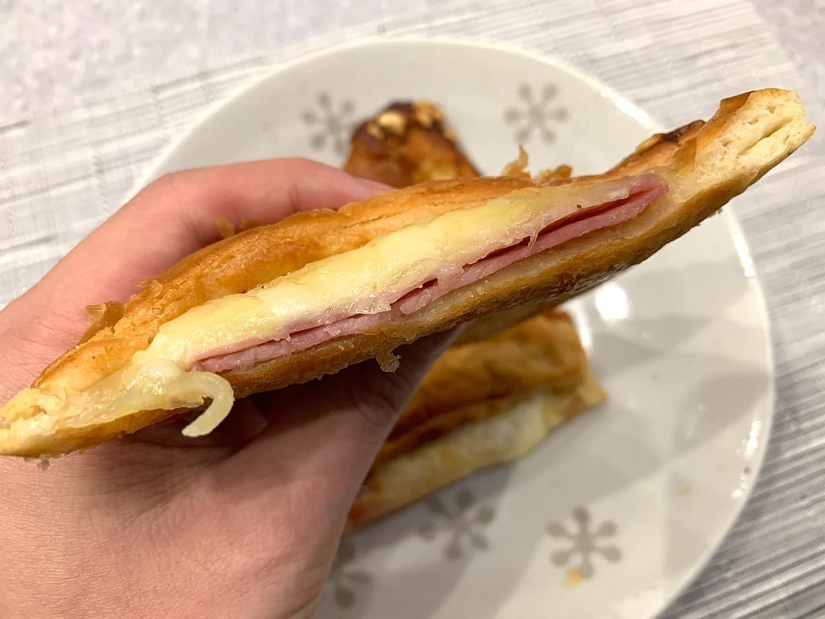 ハムもしっかりと味が感じられ、塩味が良く効いています。クロワッサン生地のバターの香ばしさとハム・チーズの塩気が絶妙にマッチしており、一口ごとの満足感は非常に高いです。