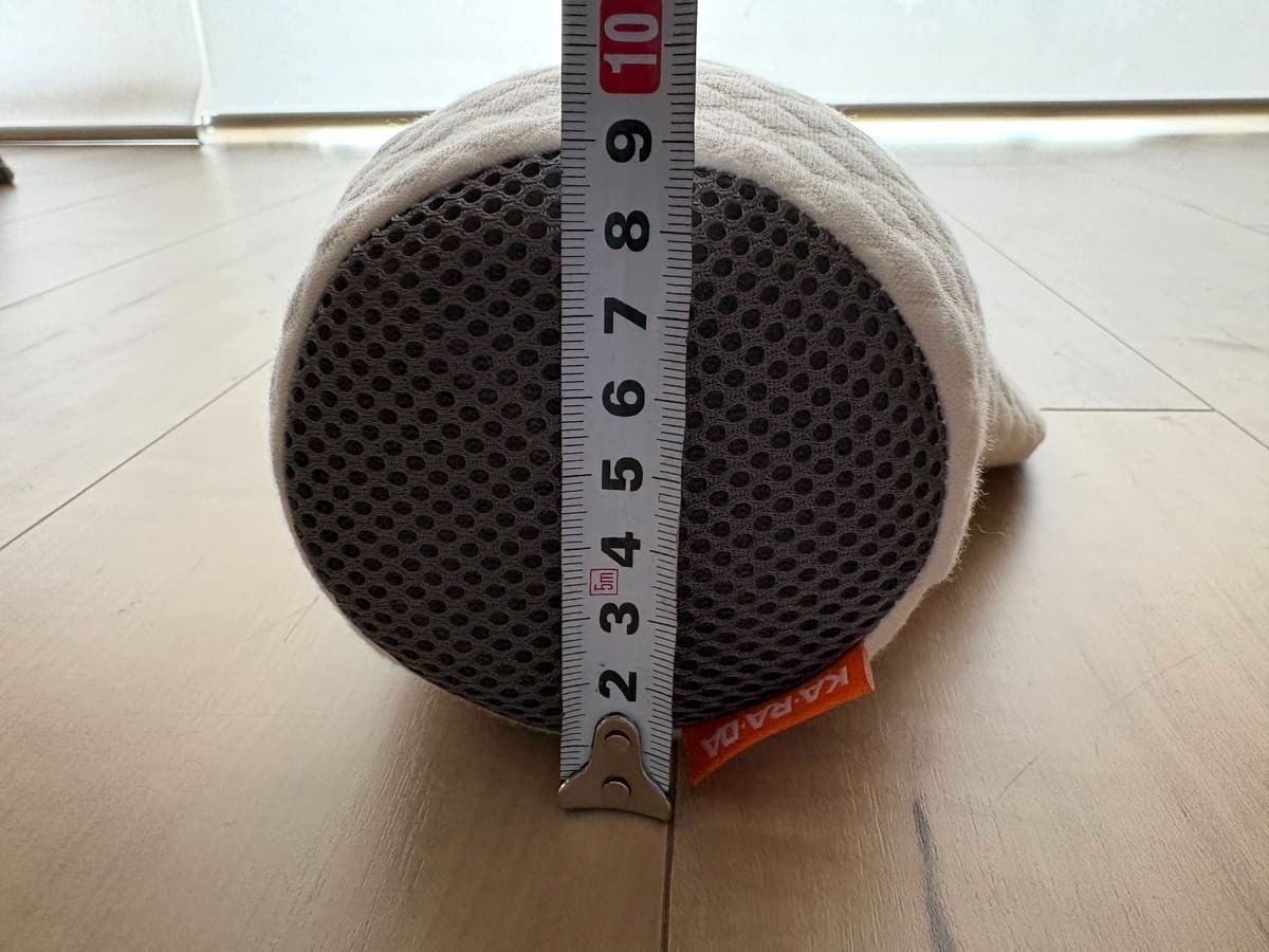 「低め」という表記がありますが、実際に測ってみると高さは約9cmほどあり、首のアーチをしっかり作ってくれそうな形状です。