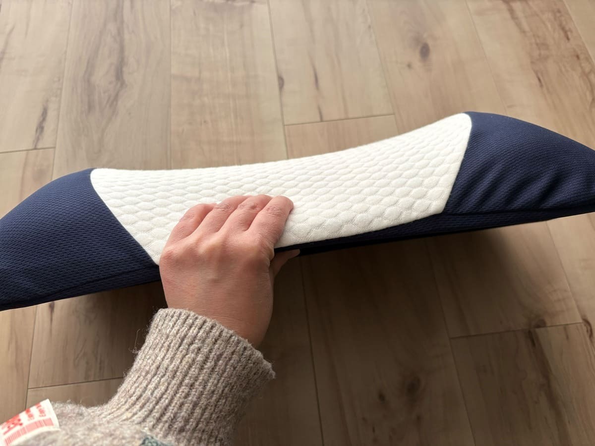 使ってみて気づいたポイントとしては、頭にまくらを使わずこれ単体だと、腰の位置が高くなりすぎて少し寝苦しい印象がありました(筆者が小柄なせいもあるかもしれません)。