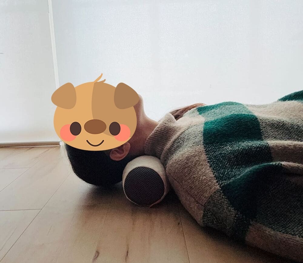いつもの「頭用のまくら」と併用することで、体全体のバランスが取れていい塩梅に落ち着きました。
