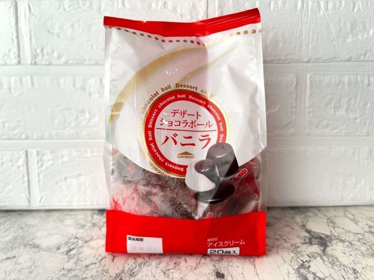 一口サイズのバニラアイスクリームをスイートチョコで包んだ商品です。20個入りで1個ずつ個包装になっているため、シェアするのにぴったりです。