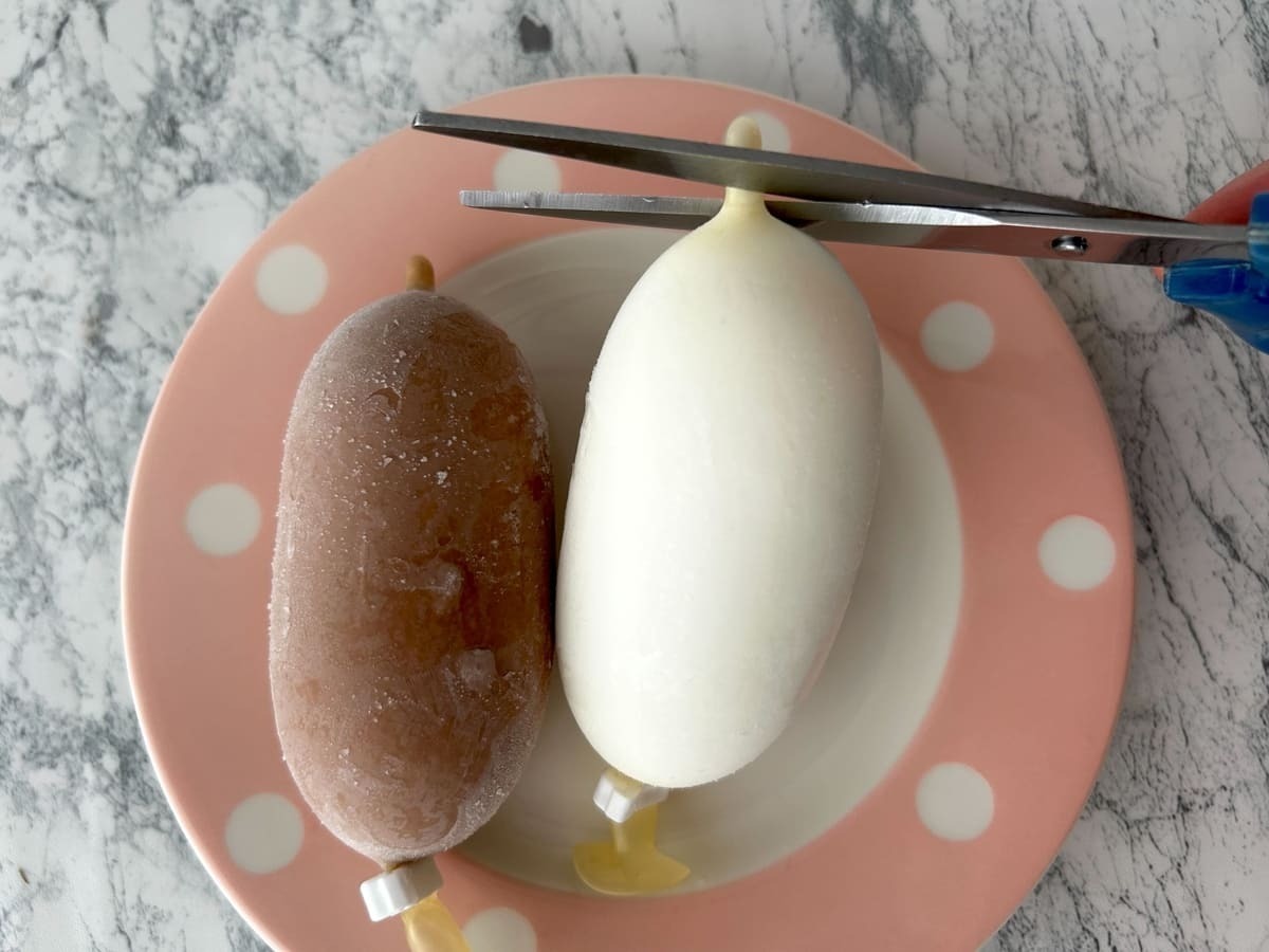 食べる際は説明通りに先端をハサミで切り落とします。バニラ味はラクトアイスならではのあっさりとした味で、昔ながらの懐かしさを感じる素朴な味わいが楽しめます。