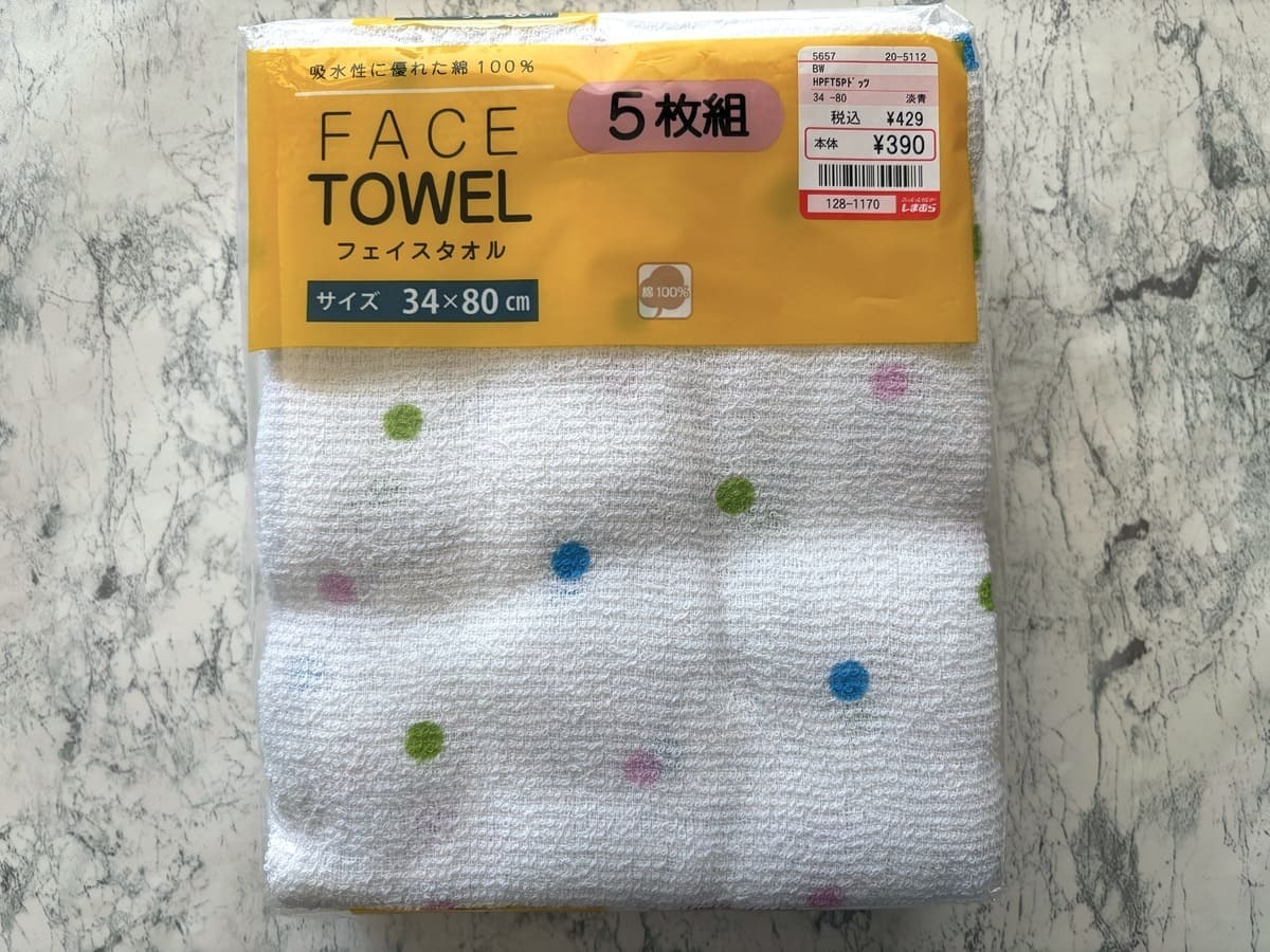 最後にご紹介するのは、コスパ重視派や大家族の強い味方、5枚組フェイスタオルです。