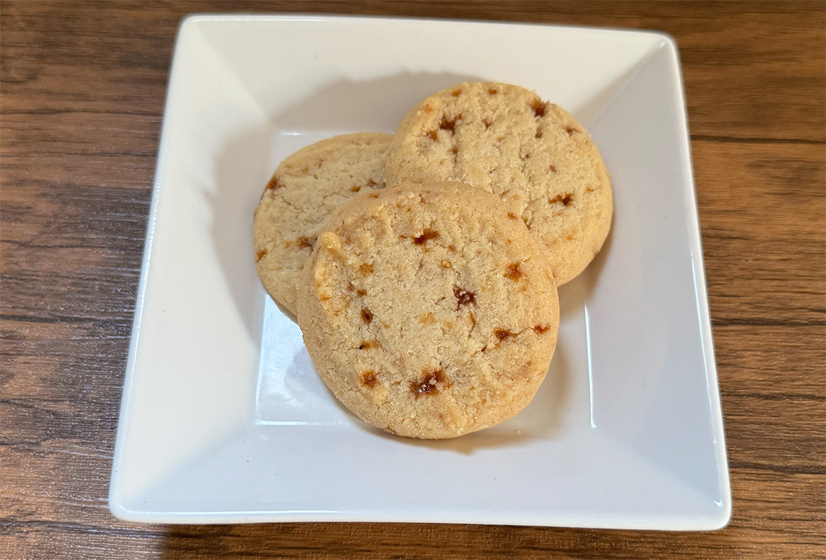 一口食べると、ザクザクとした食感の中にねっとりとした濃厚なキャラメルの味わいが広がり、多層的な味わいを楽しめる満足感の高い贅沢なクッキーです。