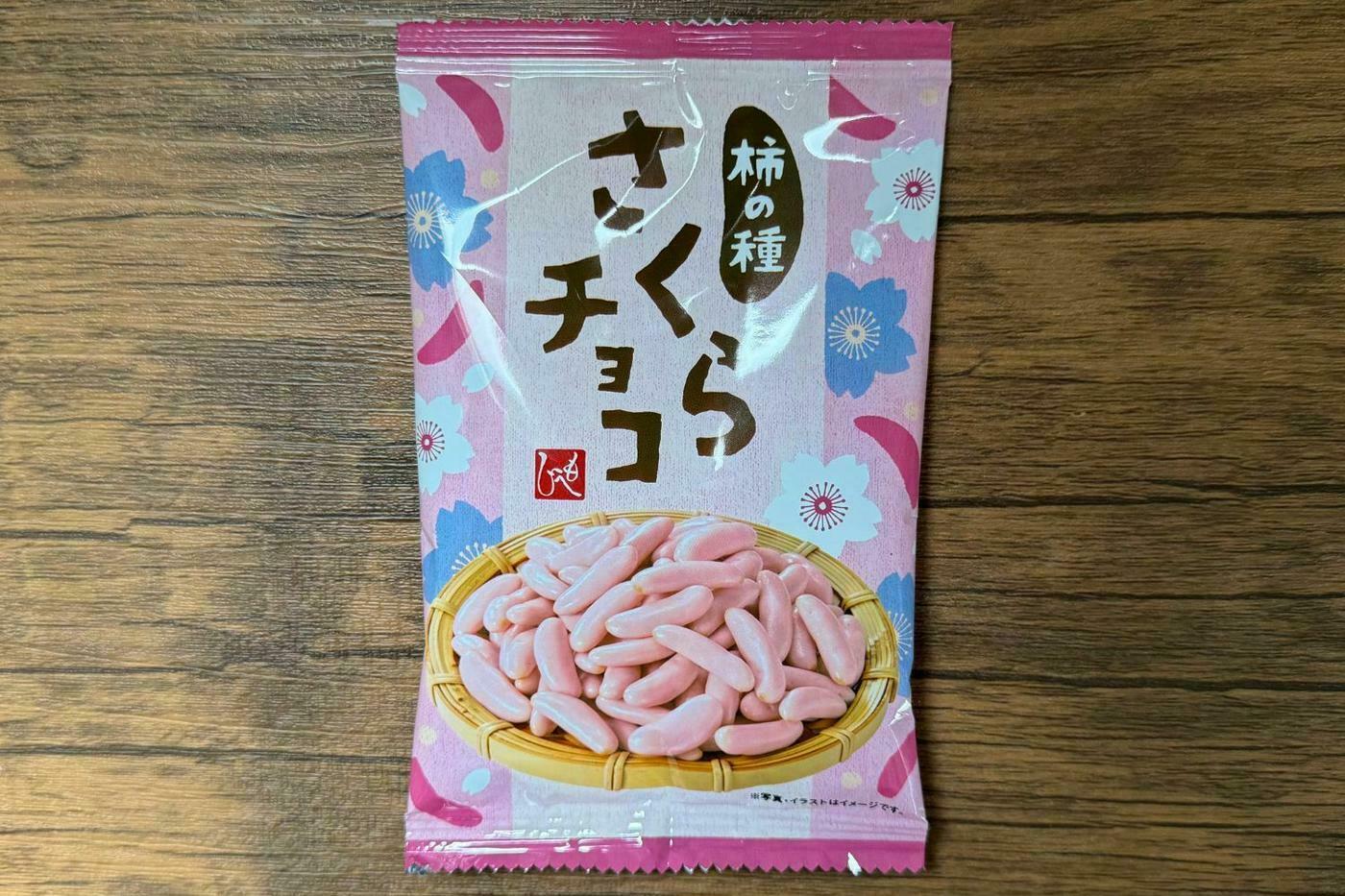 実際に食べてみると、中の柿の種は想像よりも少し硬めで、カリッとした歯応えが好印象でした。さくらの風味が感じられるチョコレートと、ほんのりとした塩気が混ざり合う甘じょっぱい味わいは、硬めの食感とも相まってクセになります。