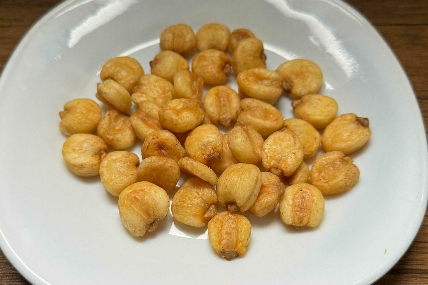 ビールのおつまみにぴったりな濃いめの味付けと多彩な食感で、つい手が止まらなくなる美味しさですが、100gあたり585kcalとカロリーは高めですので食べ過ぎにはご注意ください。
