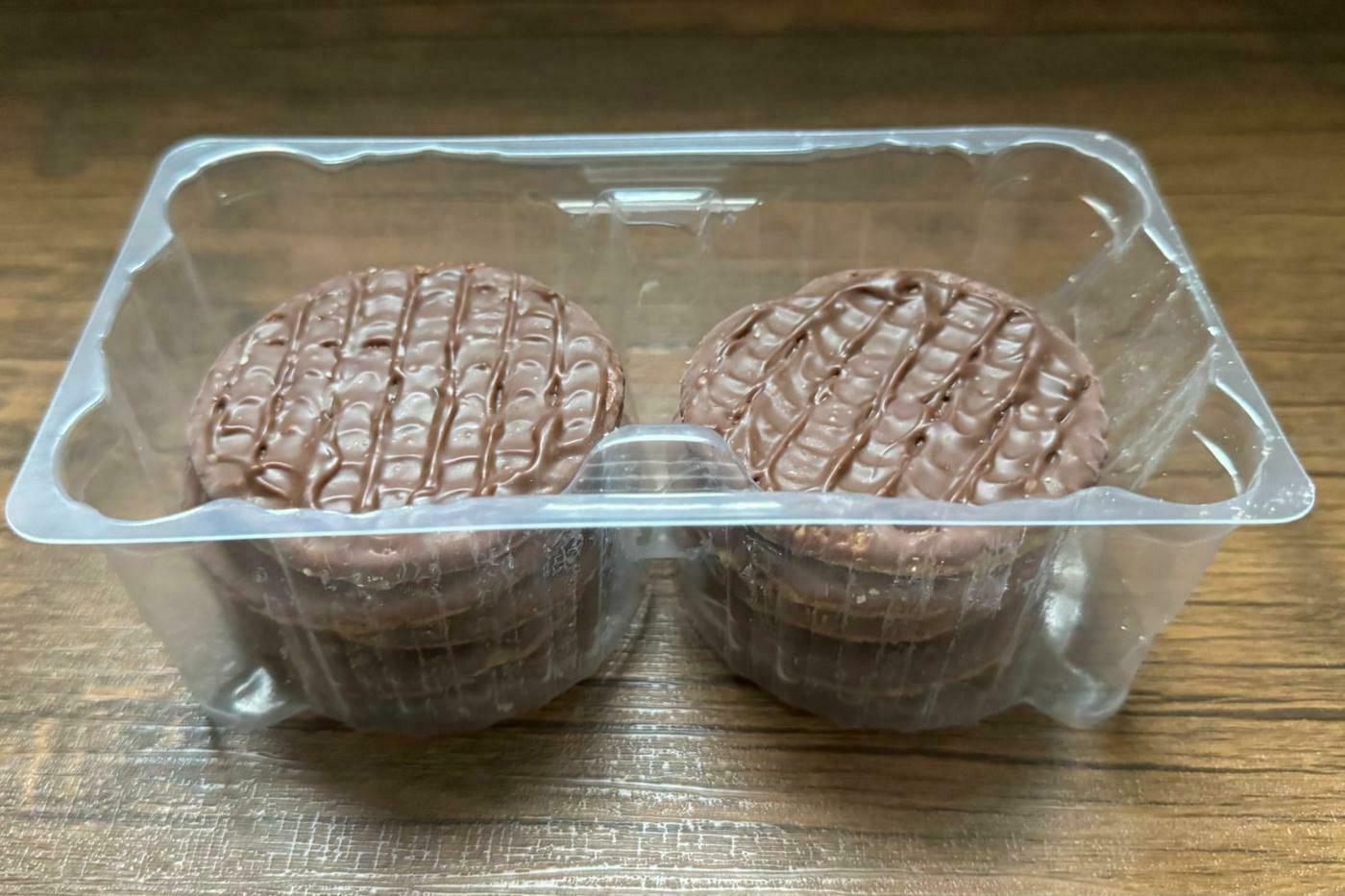 ザクザクとしたクッキーの食感とともに、キャラメルとチョコレートの贅沢なマリアージュを楽しめます。袋の中にはチョコレートでコーティングされた厚みのあるクッキーが4枚ずつ、計8枚入っており、一枚一枚に厚みがあるため非常に食べ応えがあります。