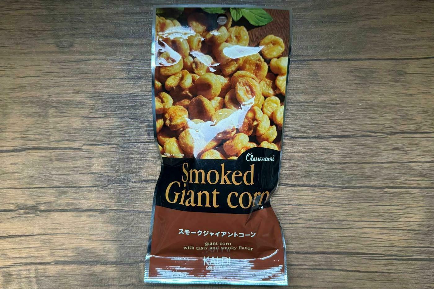 一粒食べれば病みつきになる、後を引く美味しさが楽しめるスモークジャイアントコーンです。歯ごたえの良いジャイアントコーンを、味わい深い燻製風味に仕上げています。かなり硬めの食感で、バリバリ、ボリボリと噛み砕く食感がクセになります。
