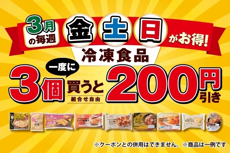 セブン-イレブンでは、3月の毎週「金・土・日曜日」限定で、冷凍食品をお得にまとめ買いできるキャンペーンを開催。