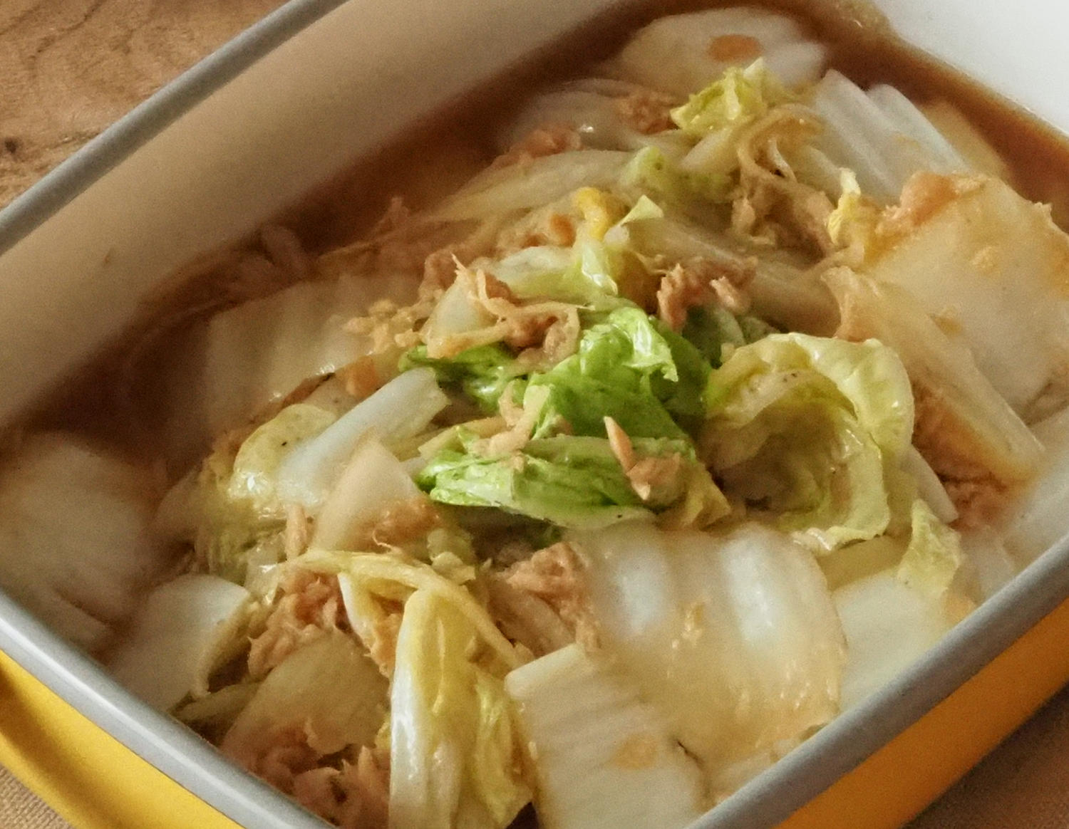 【作りおき】白菜とツナのしょうが煮調理時間:15分材料作りやすい分量ツナ(オイル漬け)1缶(70g)白菜3枚(250g)しょうがチューブ1cmめんつゆ(3倍濃縮)大さじ2作り方1下準備する白菜は葉と芯に切り分ける。葉はざく切りにし、芯は2cmのそぎ切りにする。2煮る鍋に水250ml(分量外)と全ての材料を入れ、中火にかける。煮立ったら弱火にして10分煮る。
